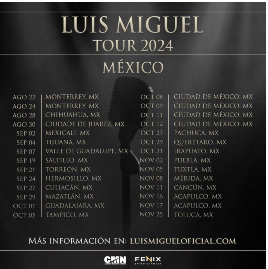 Luis Miguel celebrará su Luis Miguel Tour 2024, que comenzará el año con 80 fechas en más de 20 países de Latinoamérica, Estados Unidos y Canadá, para luego pasar a España y continuar en México agregando otras 28 fechas adicionales. Un hito que vuelve a demostrar la vigencia de un artista capaz de trascender a lo largo de las décadas a cualquier generación gracias a su gran talento que lo hace único.