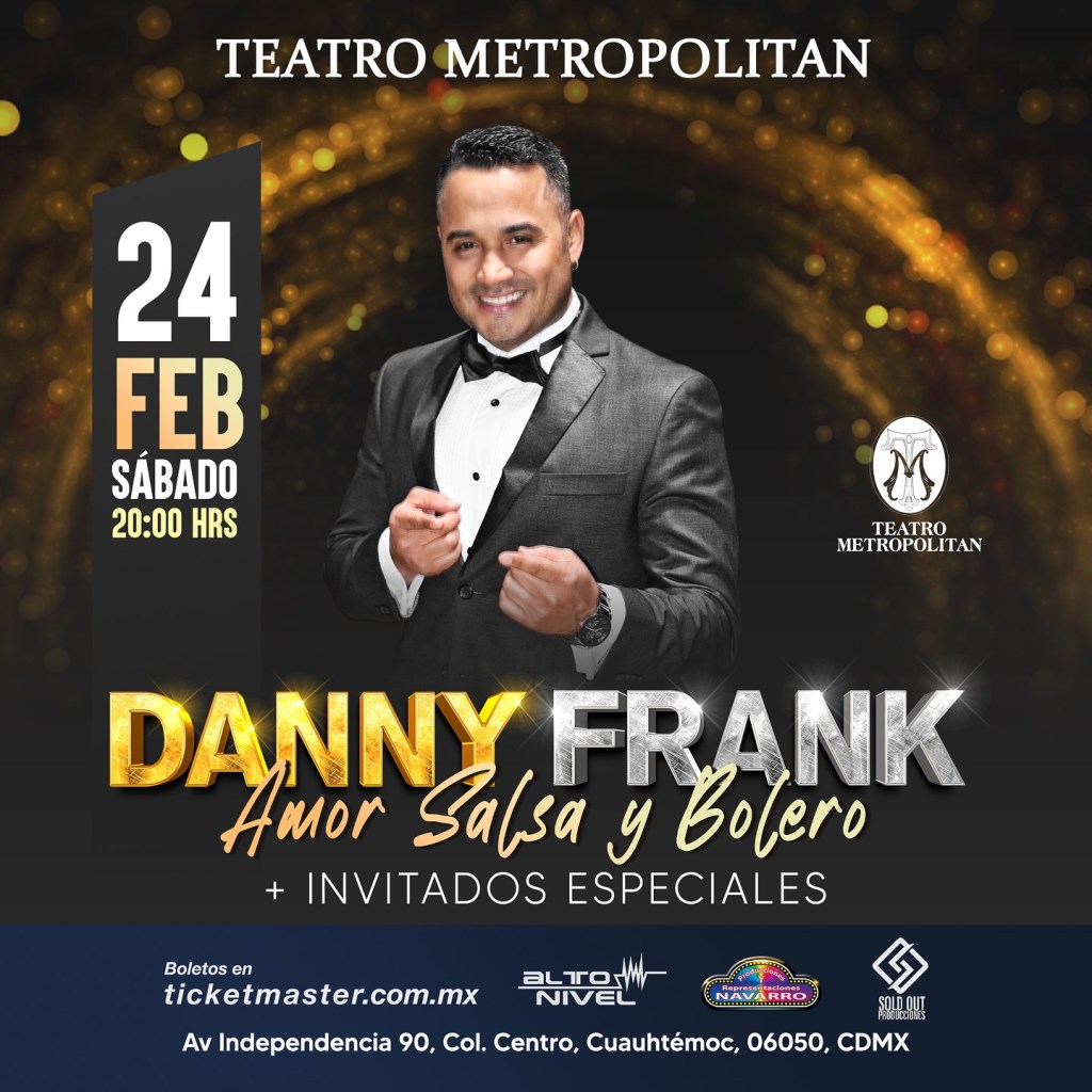 Danny Frank ha anunciado su presentación en el Teatro Metropólitan de la Ciudad de México el próximo Sábado 24 de febrero a partir de las ocho de la noche con invitados especiales de lujo en el marco de una presentación única y muy especial que ha denominado “Amor, Salsa y Bolero”. Los boletos están disponibles en el Sistema Ticketmaster y en taquillas del inmueble. Un espectáculo que promete ser un viaje musical inolvidable con uno de los artistas más destacados de la escena latina actual.