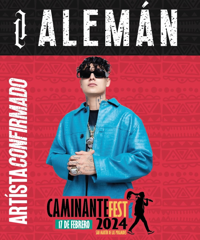 Alemán, considerado uno de los mayores exponentes del rap mexicano, se presenta como una prueba más de su éxito en constante ascenso. Con una carrera que comenzó en 2005 a la temprana edad de 14 años, ha conquistado la escena musical con su talento, rimas afiladas y colaboraciones con figuras de clase mundial como Snoop Dogg. Su actuación en el Festival Caminante incluirá los éxitos de su nuevo álbum «Haciéndolo Fino», con colaboraciones de destacados artistas como Sebastian Llapur, Blue Rojo, Silvanozo y su novia Akasha.