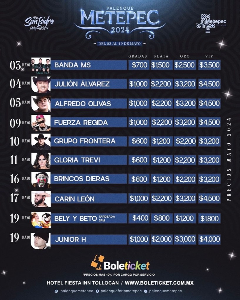 No hay fecha que no llegue ni plazo que no se cumpla. Este miércoles 28 de febrero se ha dado a conocer el cartel oficial del Palenque Metepec 2024, el cual se llevará a cabo del 03 al 19 de mayo.