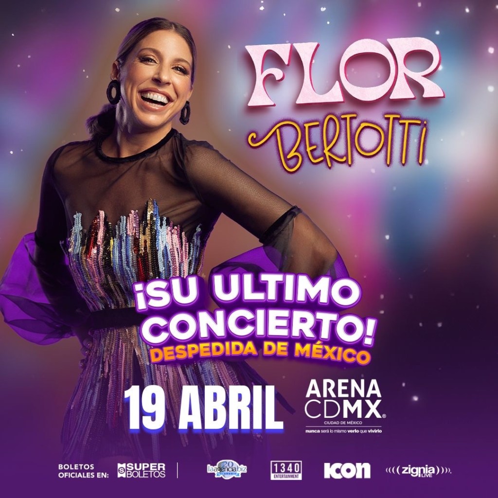 Flor Bertotti, regresa a la CDMX para despedirse de sus fans citadinos en ¡Su último concierto! Despedida de México, el próxima 19 de abril en la Arena Ciudad de México.