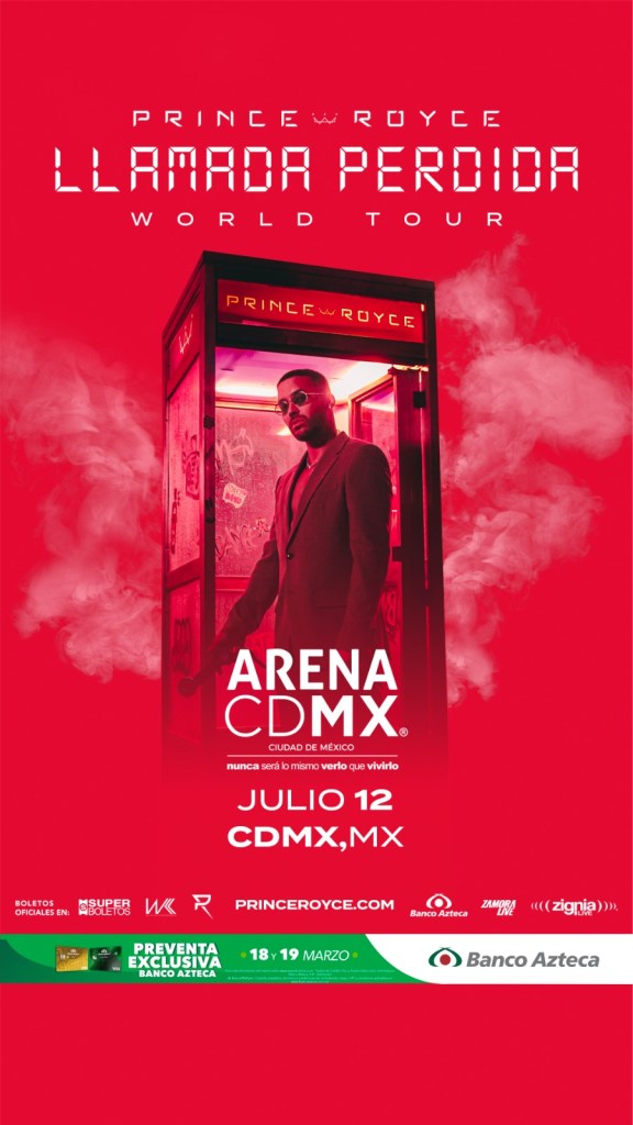 Definitivamente 2024 será un gran año para PRINCE ROYCE, ya que a sólo un par de semanas de anunciar el lanzamiento de su nuevo disco titulado “Llamada Perdida”, da a conocer las fechas de gira con las que regresará a nuestro país en junio y julio para presentar su nueva gira LLAMADA PERDIDA WORLD TOUR y con la cual hará vibrar a su tan fiel y querido público mexicano.
