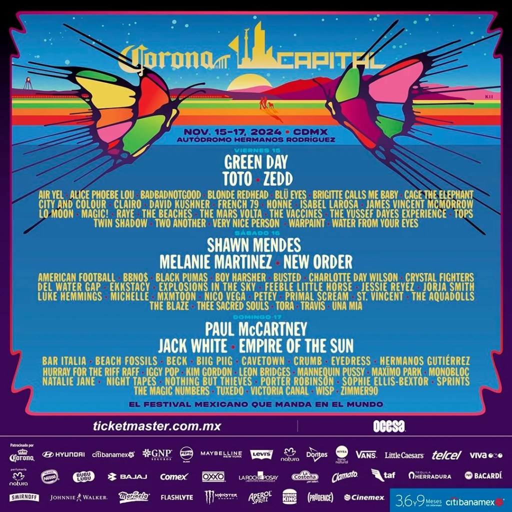 Los que encabezan esta esta edición son Green Day, Toto, Zedd, New Order, Melanie Martínez, Paul McCartney, Shawn Mendes, Empire of the sun y Jack White.