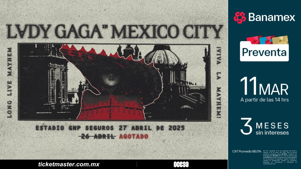 Hoy, Lady Gaga anunció una segunda fecha en la Ciudad de México en el Estadio GNP Seguros para el domingo 27 de abril, en apoyo a su séptimo álbum de estudio, MAYHEM, que se estrena hoy.