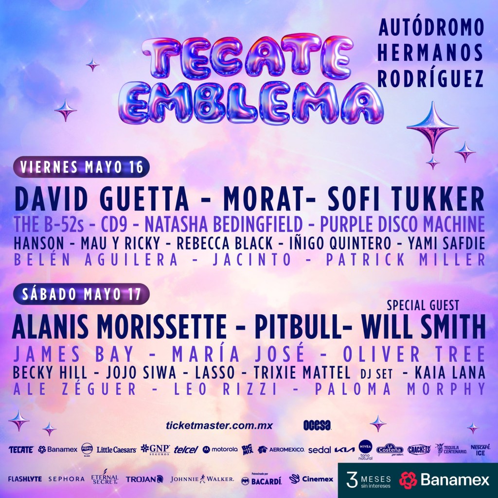 ¡Es momento de romper esquemas y vivir la música sin etiquetas! Tecate Emblema regresa al Autódromo Hermanos Rodríguez este 16 y 17 de mayo para regalarnos dos días llenos de ritmo, nostalgia y euforia, donde los géneros se mezclan y las generaciones se unen en un solo lugar. Aquí no hay reglas, aquí está tu música favorita en vivo.