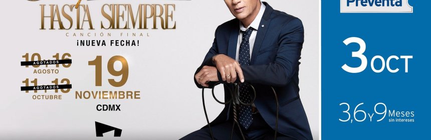 AGOTADO 11 y 13 de octubre – CDMX NUEVA FECHA 18 de noviembre – Auditorio Telmex 19 de noviembre – Auditorio Nacional Preventa Citibanamex para ambas fechas: 3 de octubre El poeta de la canción, Napoleón, se despedirá de los escenarios con una cifra alta. Después de agotar su cuarta fecha en el Coloso de Reforma, el cantautor anuncia que deleitará