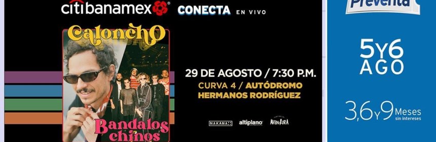 Siguen los conciertos al aire libre en la curva 4 de Autódromo Hermanos Rodríguez, ahora es el turno para Caloncho y Bandalos Chinos de pisar el escenario este 29 de agosto a las 19:30 hrs En conferencia de prensa, tanto el mexicano Caloncho como los argentinos Bandalos Chinos, dijeron estar emocionados por este concierto presencial después un largo periodo de