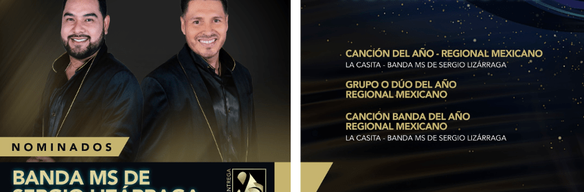 Canción del año – Regional Mexicano: “La casita” Grupo o Dúo Regional MexicanoCanción banda del año – Regional Mexicano: “La casita”Son las ternas en las cuales aparece el nombre de la banda más consistente de la década Esta mañana se dieron a conocer las nominaciones a Premios Lo Nuestro 2021 y con agrado les informamos que la BANDA MS DE SERGIO LIZÁRRAGA logró un